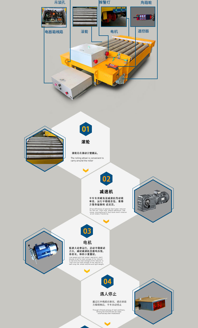 臺(tái)面尺寸4000*2000,載重10噸,車子可以前后直行距離20米,該車的供電方式為電纜線供電,電纜卷筒安裝在側(cè)面。