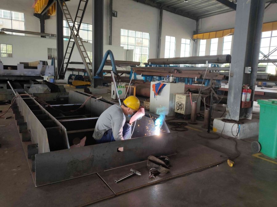 數(shù)控下料→拼裝焊接→焊接→打磨除銹→噴底漆→裝配車輪→裝配電機(jī)和減速機(jī)→噴面漆→電器安裝→電器調(diào)試→整車調(diào)試→試運(yùn)行